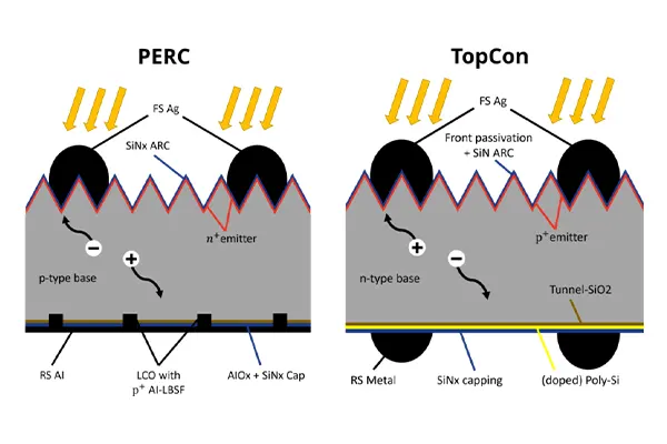 Compared to PERC panels, TOPCon modules exhibit lower power degradation during their first year of use and over the course of 30 years of PV panel usage. This durability and sustained performance make TOPCon modules an attractive choice for long-term solar installations.
