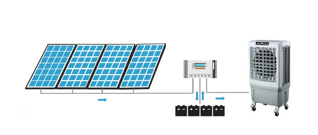 In reality, on hot bright days, solar panels receive the most sunshine, allowing them to create enough electricity to power a solar cooler. On gloomy days, solar batteries can offer enough power to power your solar air conditioner.